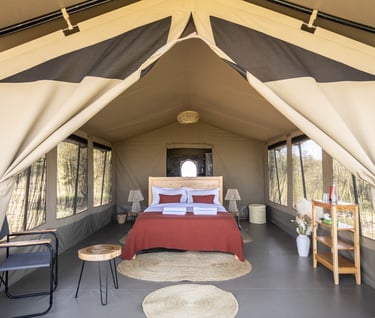 Vous serez hébergés dans un camp de tentes tout confort, situé au cœur du Masai Mara, en pleine savane africaine. Ici, pas de clôtures, pas de béton, seulement la nature brute et la faune sauvage à perte de vue.